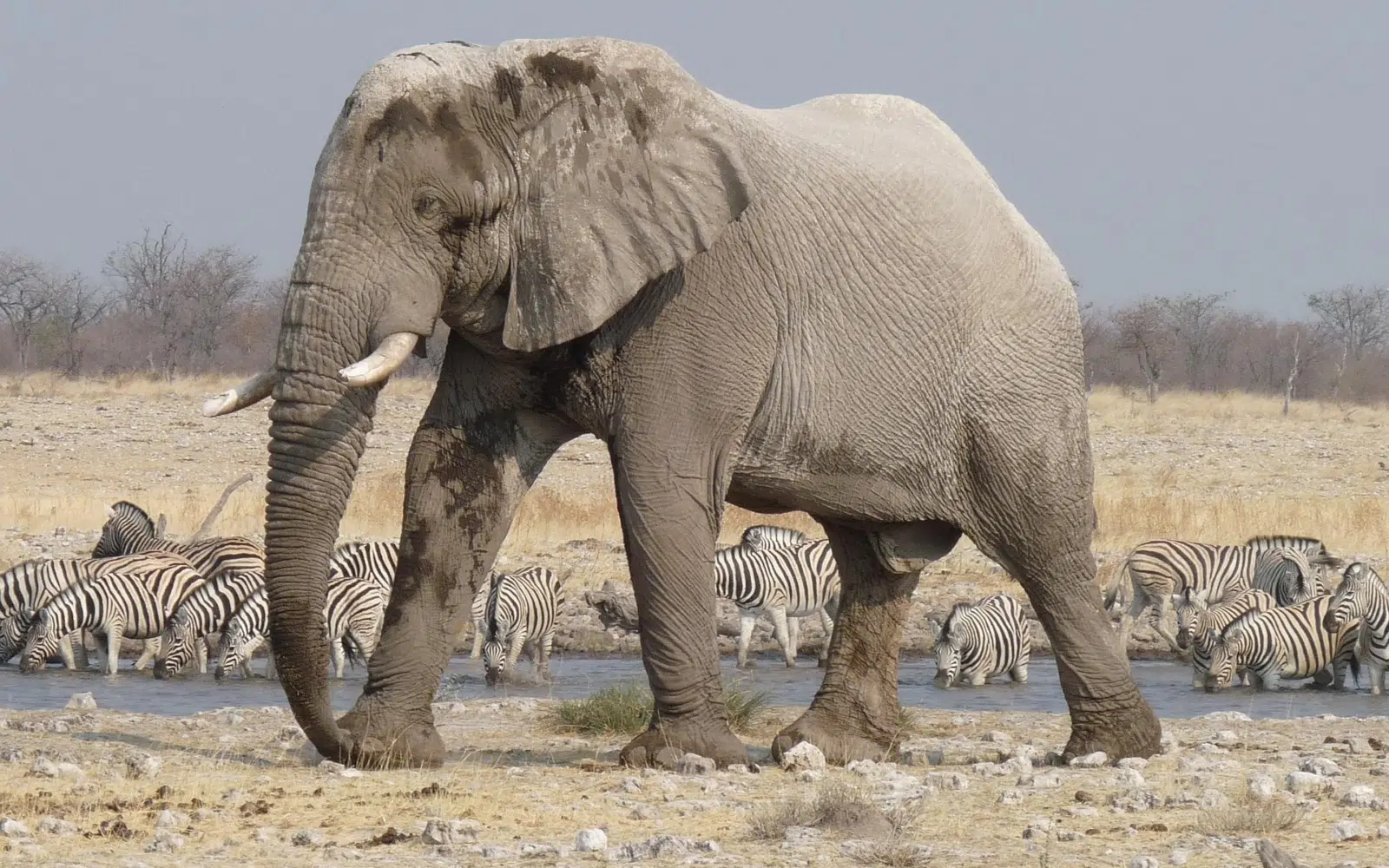 Etosha, tire son nom de la dépression d’Etosha Pan (qui signifie point d’eau asséché), une vaste dépression de 120 km de long sur 72 km de large. Le Parc National d’Etosha offre sans conteste l’un des plus beaux tableaux de la vie sauvage au monde.